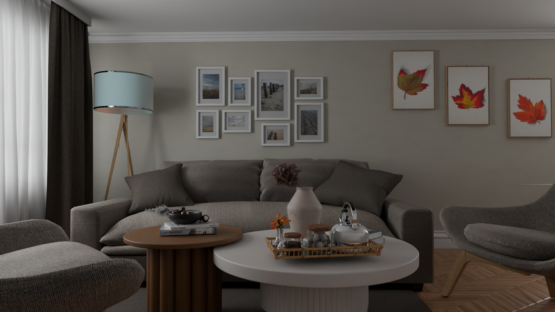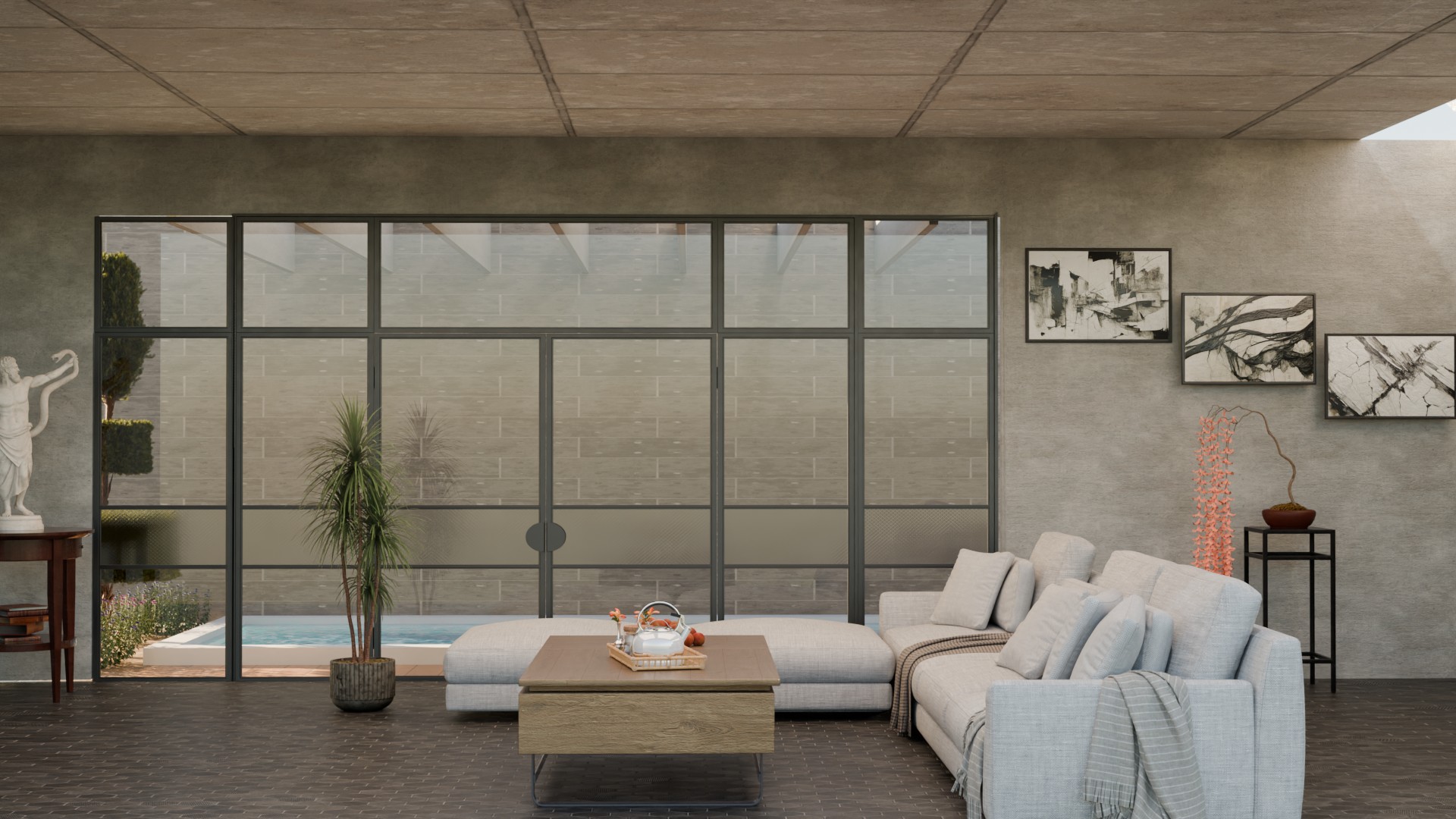 Interieur- en exterieurbeelden met cinematografische belichting, diepte en detaillering.